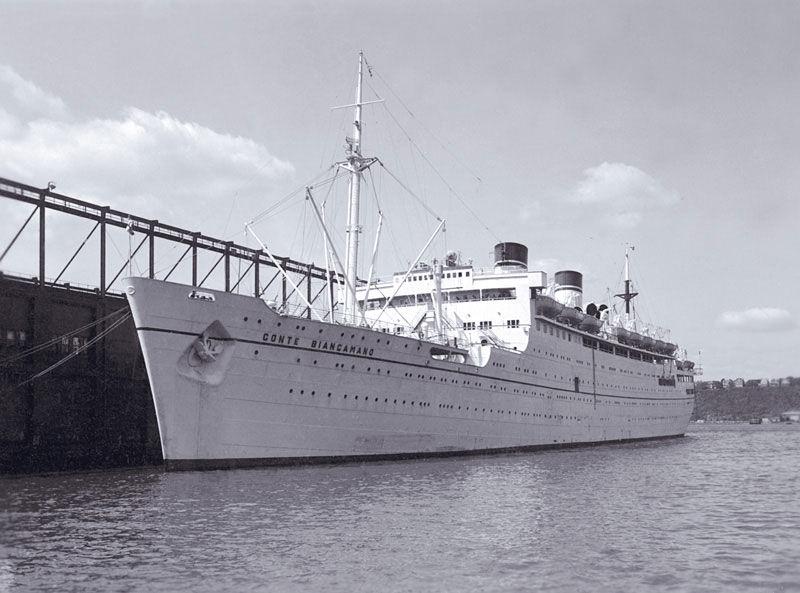 In July 1949, S.S. Conte Biancamano was placed on the Genoa to Buenos Aires route until March 21st,1950 when she was moved to the Genoa to Naples, Cannes, and New York route.
