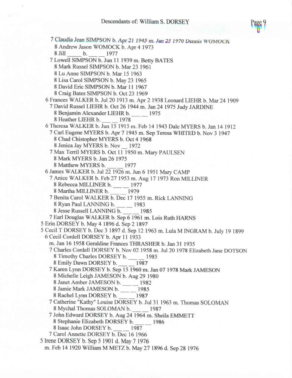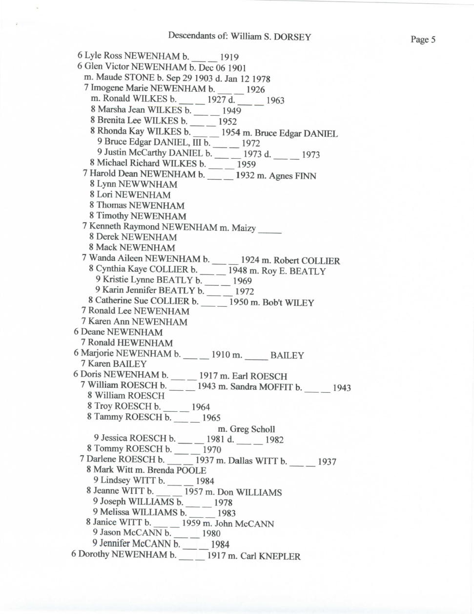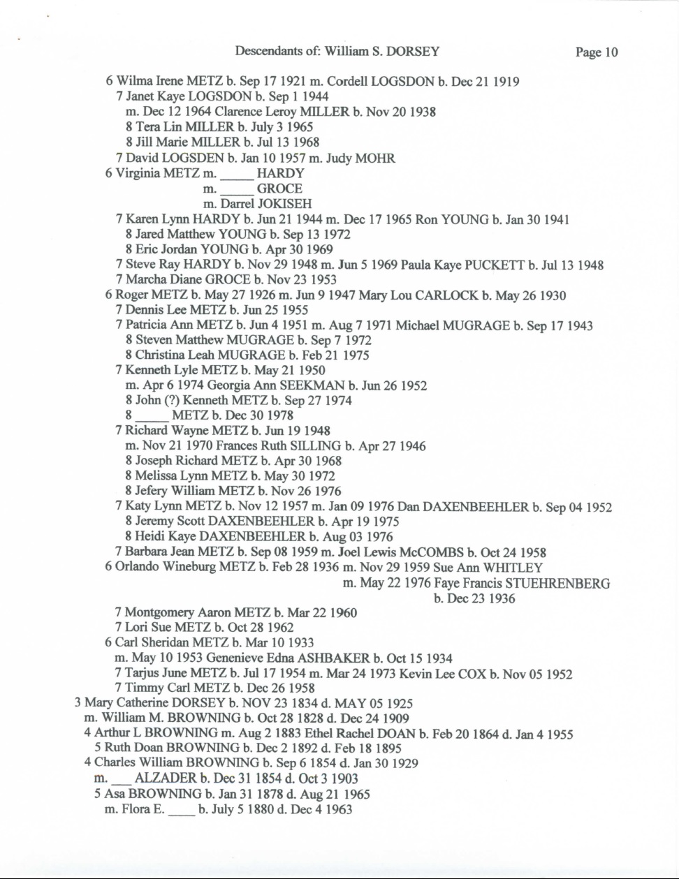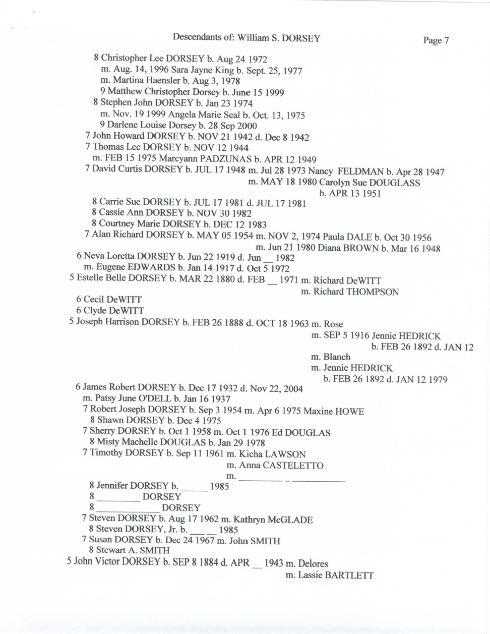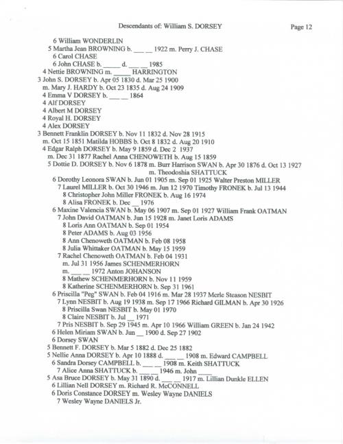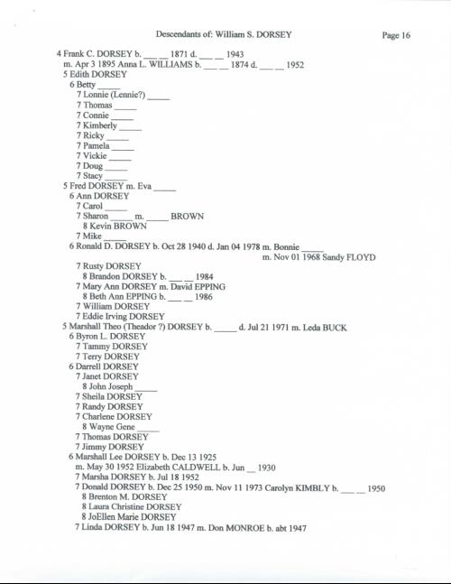 Below is an 18 page document that outlines the Dorsey family in great detail. A special thank you to Becky Dorsey Ferren for sharing this document with me along with many pictures of the Dorsey family.