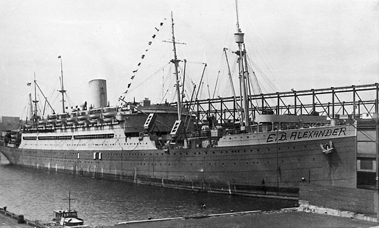 In late 1940, as part of the National defense expansion undertaken in response to the Second World War, the thirty-five year old passenger liner America (formerly U.S.S America and U.S.A.T. America) was reactivated for U.S. Army service. It was renamed U.S.A.T. Edmund B. Alexander and she initially served as a barracks ship at St. John's, Newfoundland. After the middle of 1941, the ship was used as a transport in the Gulf of Mexico area. In May 1942, the vessel entered a Baltimore, Maryland, shipyard to begin a major modernization. This work, which was completed in April 1943, gave her new, oil-fired boilers, greater speed, and a much-changed appearance. U.S.A.T. Edmund B. Alexander spent the rest of the World War II era making transport runs between the United States, North Africa and Europe. She continued her work with the Army into the post-war era, primarily carrying military dependents. Placed in reserve in May 1949, U.S.A.T. Edmund B. Alexander was sold for scrapping in January 1957.