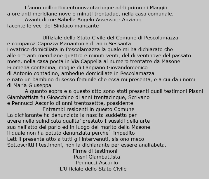 Below is a sample of Maria Giuseppa's Italian birth record converted to text.