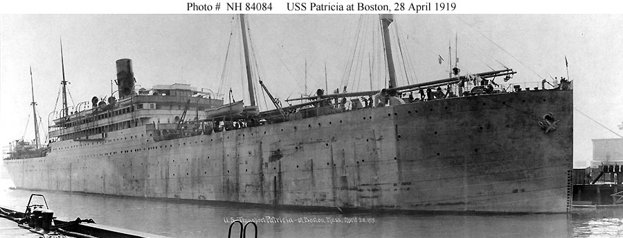 The S.S. Patricia was built in 1899 for the Hamburg America Lines by A.G. Vulcan. It was launched on February 20th, 1899 and sailed on her maiden voyage from Hamburg to New York on May 7th, 1899. IN 1900 she was re-built to accommodate more tonnage and again in 1910 for the same reason. On January 2nd, 1910 the ship rammed and sank the ELBE V. Her vessel. The last Hamburg to New York run was on November 27th, 1913. In 1914, the German Government used the ship as a transport ship to China. In March 1919, the vessel was surrendered to the United States and re-allocated to Britain in 1920 until 1921 when it was scrapped.