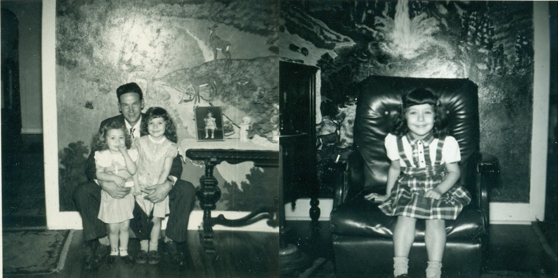 My Grandma Lena and Grandpa Tony lived in a house at 1325 West Enos street in Springfield, IL. Grandpa Tony was always inviting boarders to stay with them. One day a painter was brought home by Grandpa who needed a place to stay and practice his painting. I am unsure on what kind of deal was made, but the murial was painted by that boarder during his visit. Unfortunately, I have not been able to obtain a picturre of the mural. Although incomplete, I was able to splice a few different pictures together with shots of the Mural in the background.