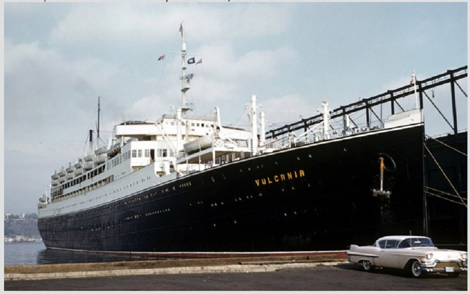 The Vulcania was built for the Cosulich Line in Monfalcone, Italy by Cantiere Navale Triestino in 1926. She was launched on December 18th, 1926 and sailed from Trieste to Patras to Naples to New York on her maiden voyage December 19th, 1928. In 1930, she was rebuilt to increase tonnage to 24,469 and fitted with new engines to increase her speed to 21 knots. In 1937, she was transferred to the newly formed Italia Line and continued the Trieste to New York Service until 1940. During World War II, it served as troopship and was used on three special missions. In 1946, she was chartered to the American Export Line to run between New York, Naples, and Alexandria until later that same year she was returned to the Italia Line. From 1947 to 1955, she ran the Genoa to Naples to New York service. In 1965, the Vulcania was sold to the Siosa Line and was also renamed Caribia. She was scrapped in Kaohsiung on March 15th, 1974.