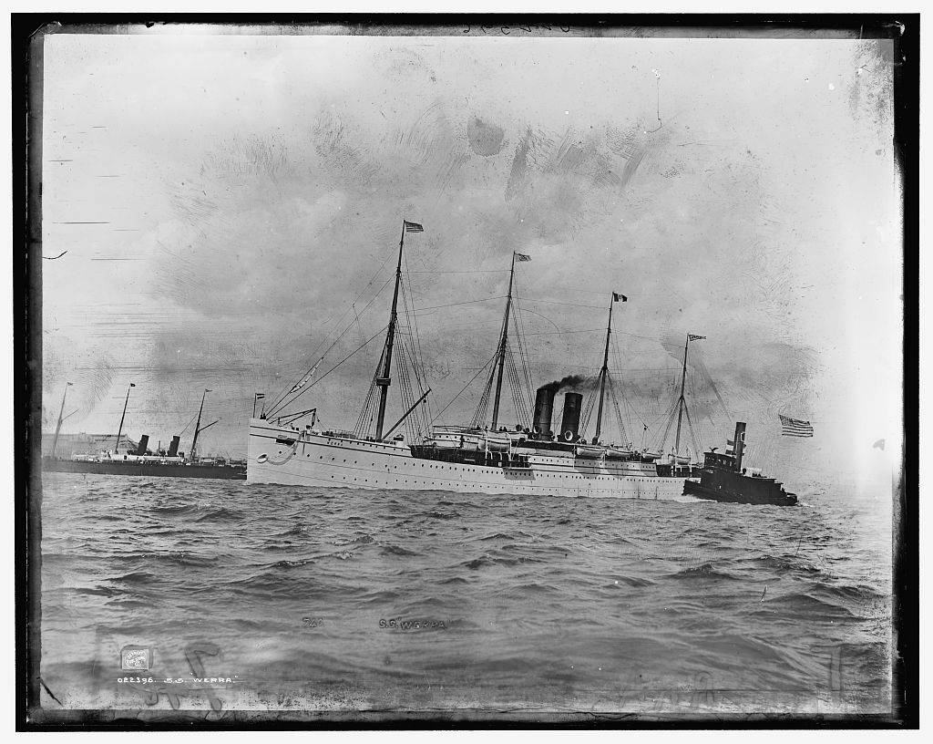 John Elder & Company launched the build of the S.S. Werra on July 4th, 1882 which she made her maiden voyage that following October from Bremen to New York. This was the normal route until November of 1891 when it was sold and began the Genoa, Italy, to New York route. The Werra made her final run from Genoa to Naples, to New York August 28th, 1901. It was scrapped in 1903.