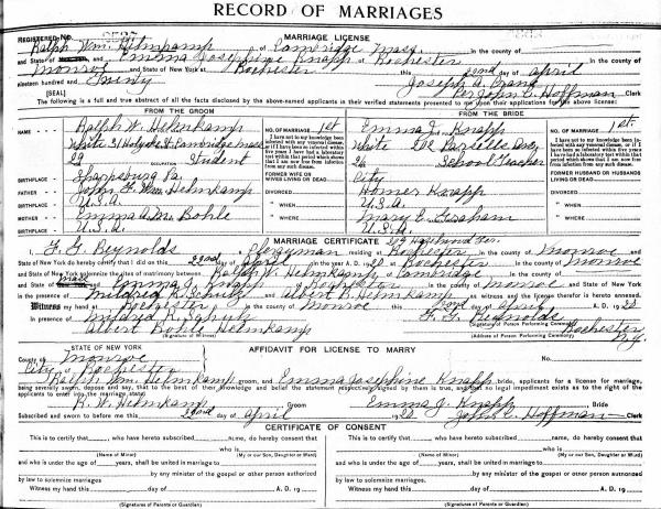 Ralph William Helmkamp were married on April 22, 1920 in Rochester, Monroe, New York, USA. She died on May 2, 1973, at age 79. She was buried in Mount Hope Cemetery, Rochester, New York.