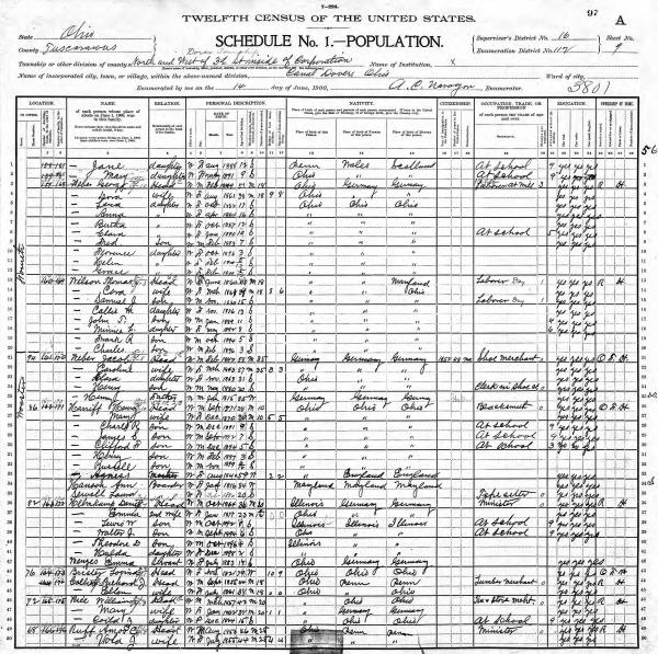 Helmkamp Family 1910 Federal Census Ohio, Lines 86-95