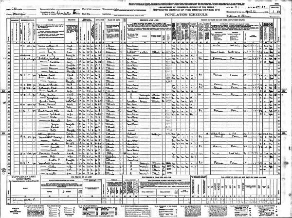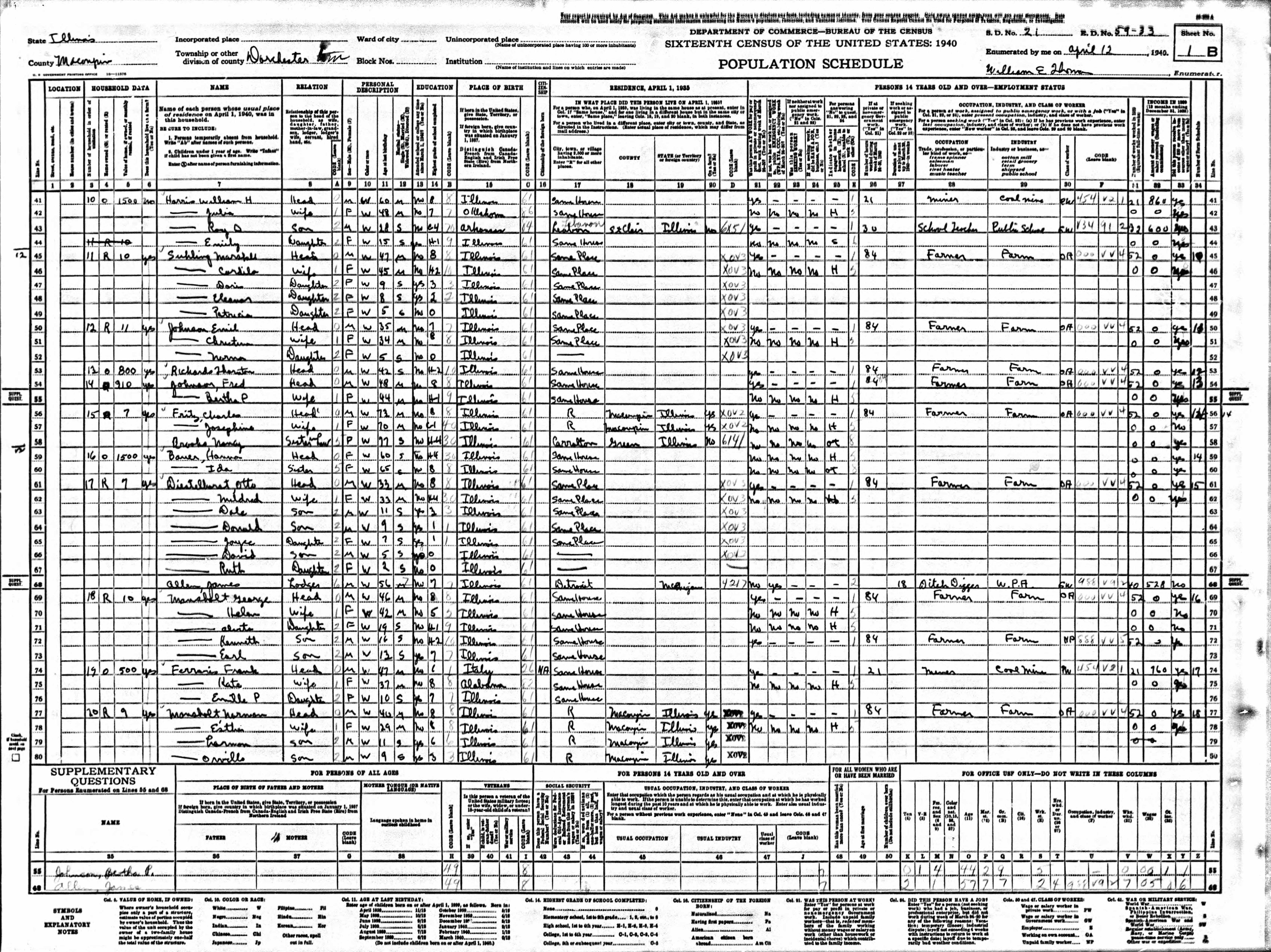 Mansholt Family 1940 Federal Census Illinois, Lines 77-80