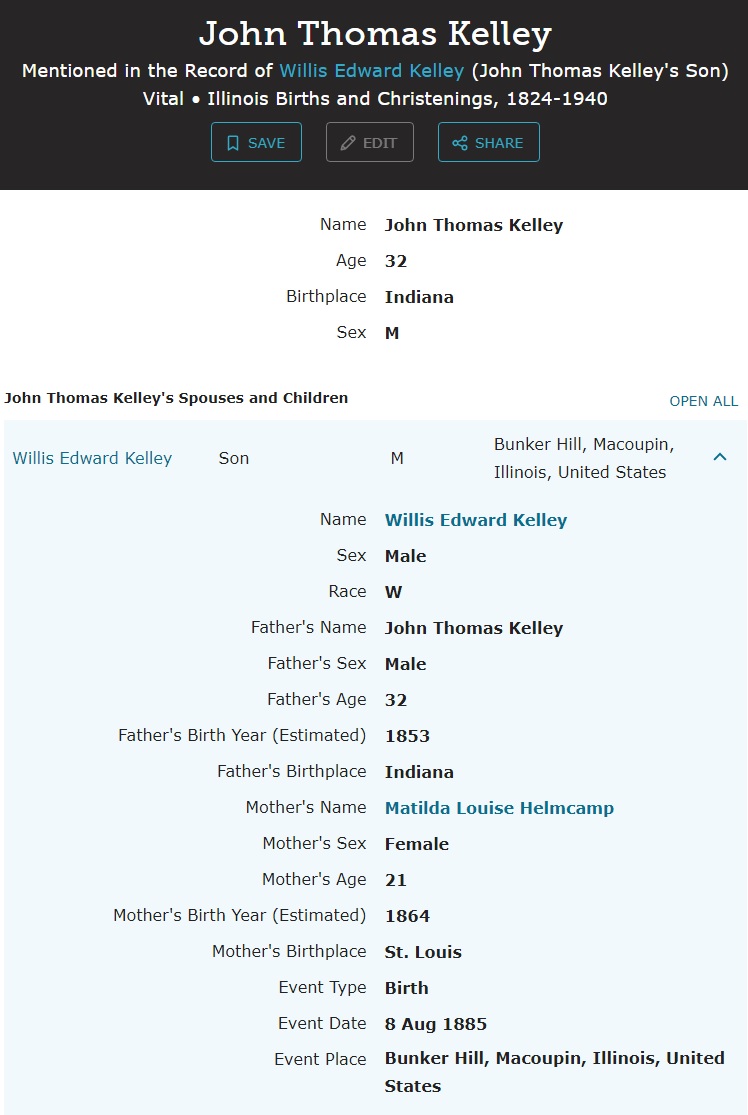 Willis Edward Kelly was born on August 8, 1885 in Bunker Hill, Macoupin, Illinois, USA. He died.
