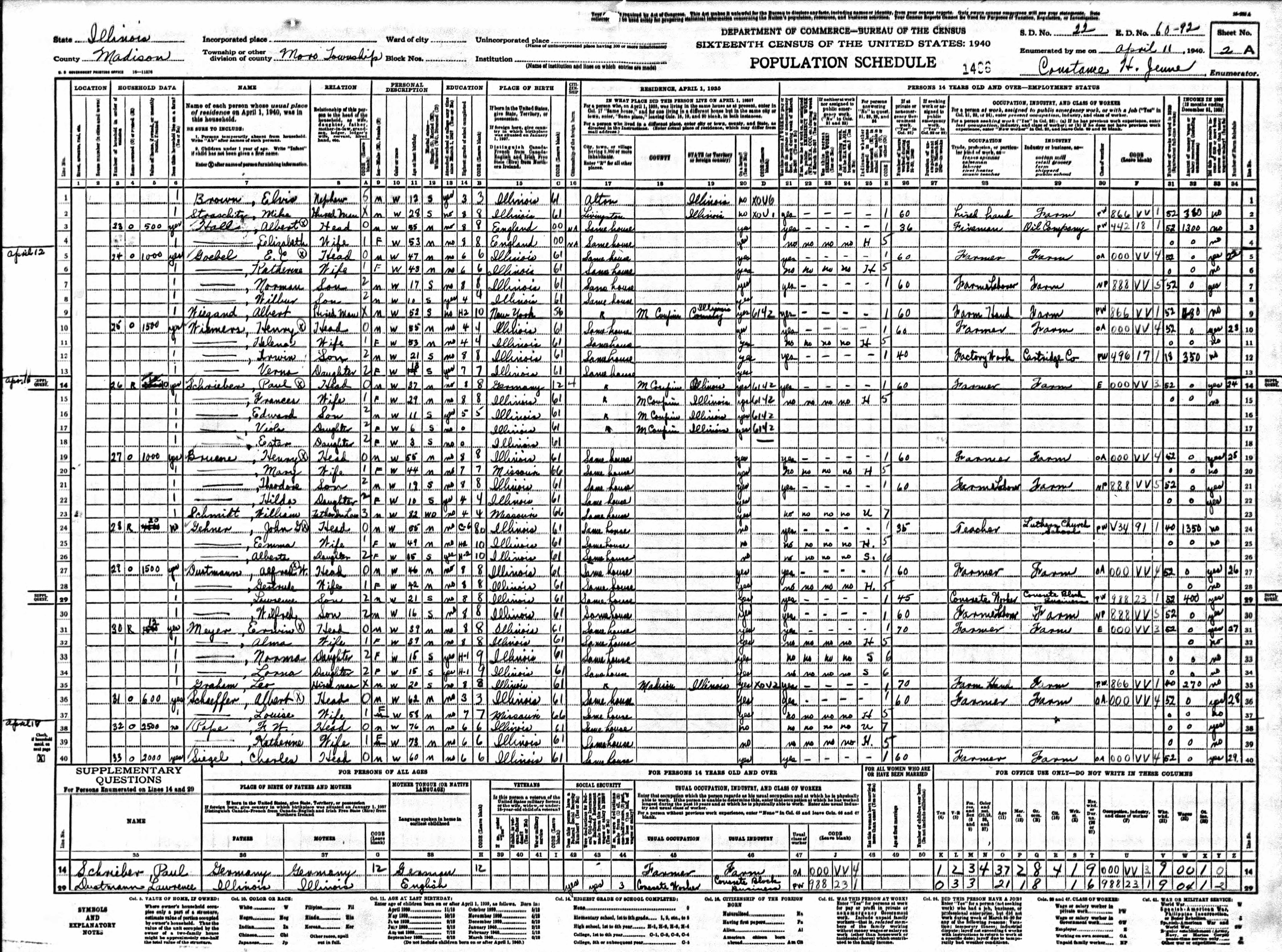 Mansholt Family 1940 Federal Census Illinois, Lines 1-3