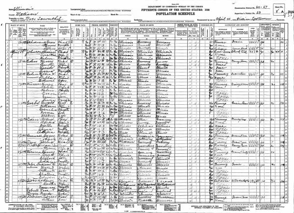 Wiemers Family 1920 Federal Census Illinois, Lines 11-15