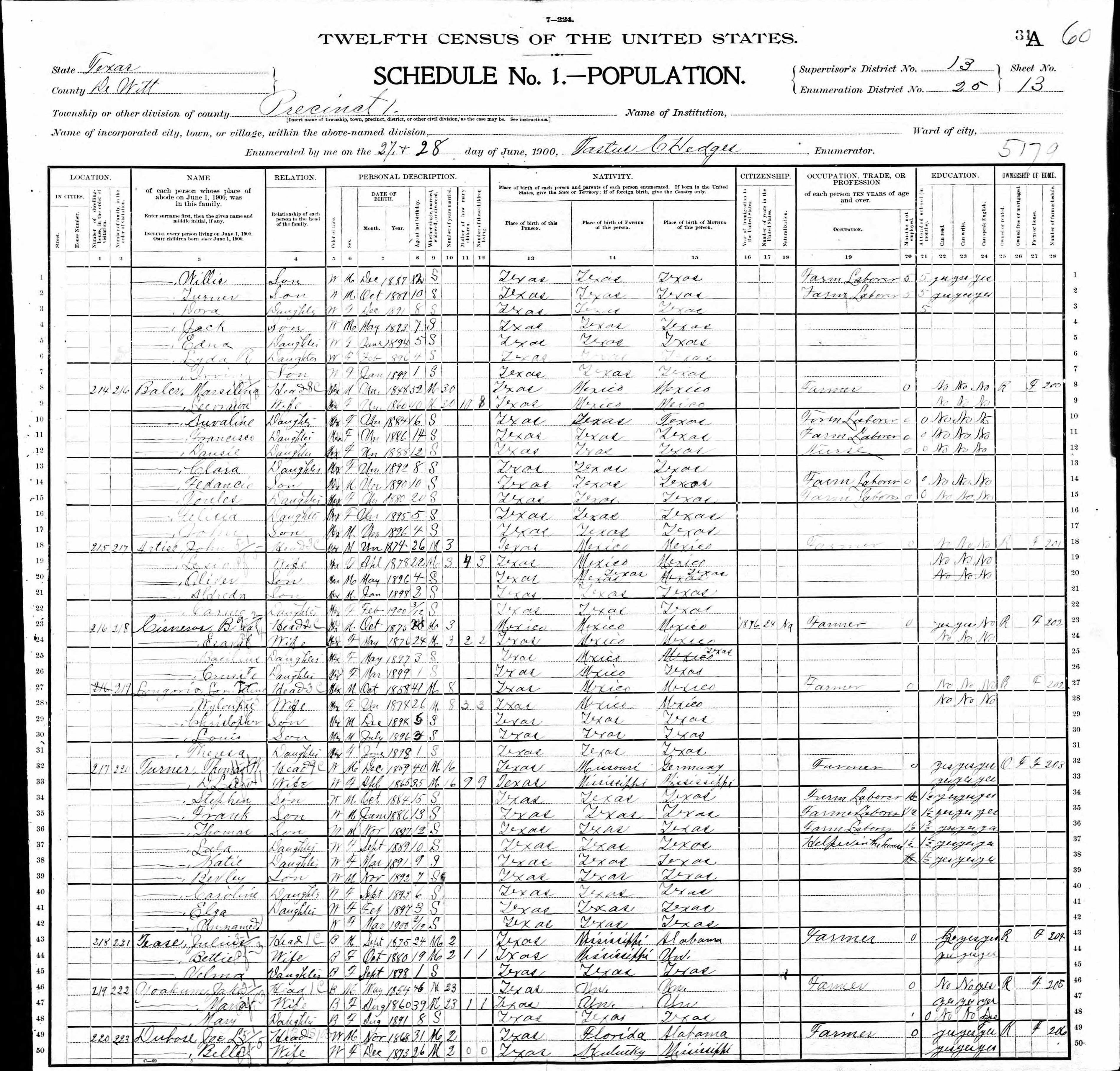 Wallis Family 1900 Federal Census Texas, Lines 1-7