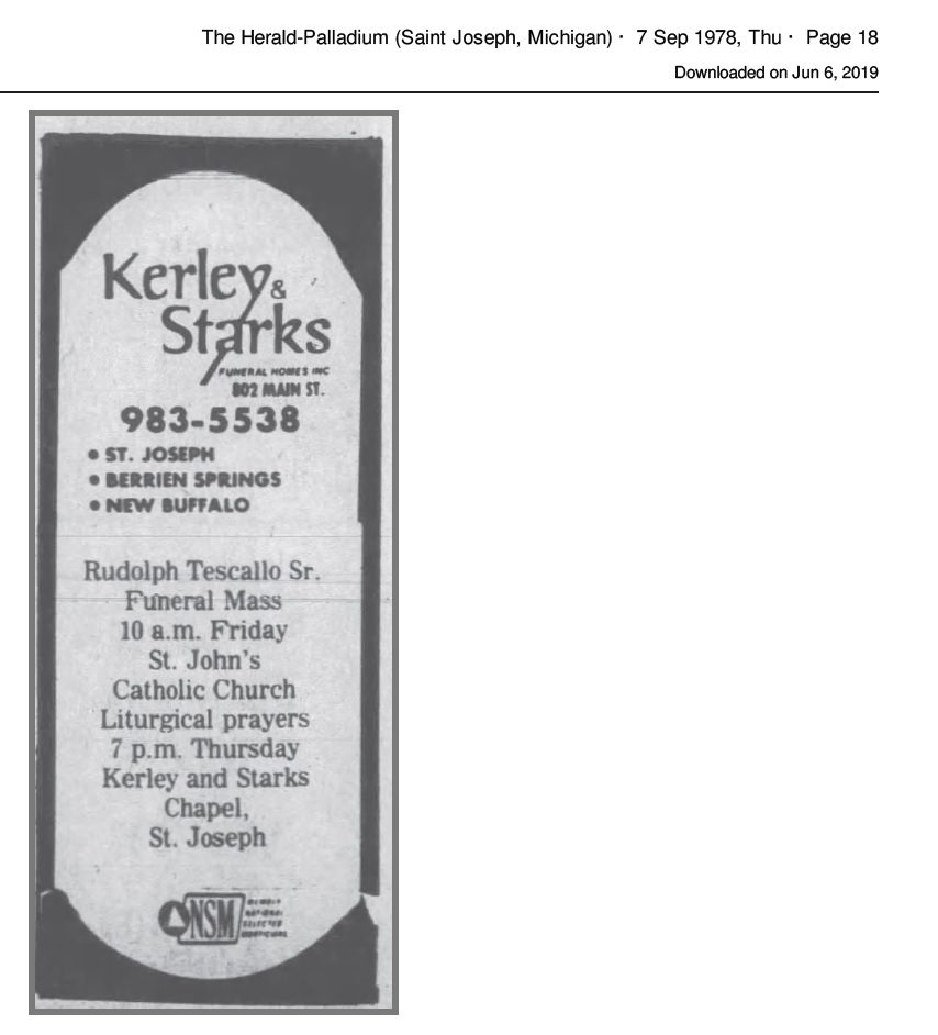 Adolph "Rudolph" Steskal "Tescallo", Sr.