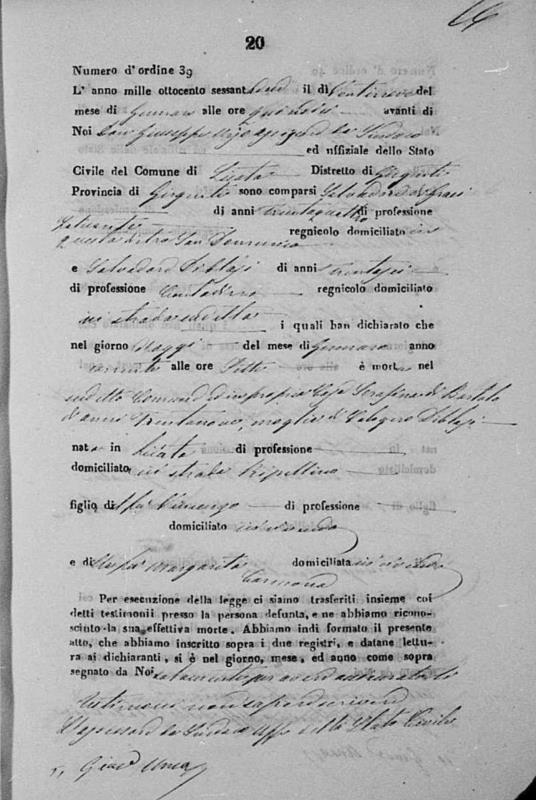 Angelo Calogero Salvadore Di Blasi were married. She died on January 29, 1862, at age 32, in Licata, Agrigento, Sicily, Italy.