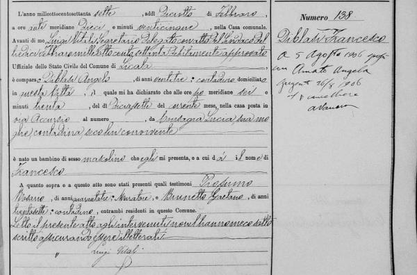 Rosaria Pirozzi were married on April 4, 1841 in Boscotrecase, Naples, Campania, Italy. He died.