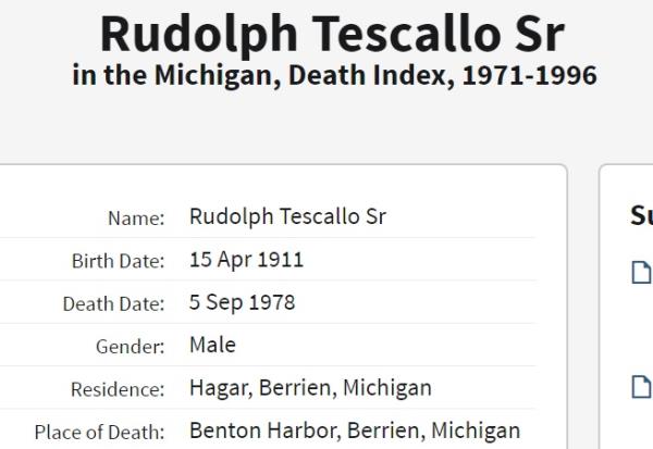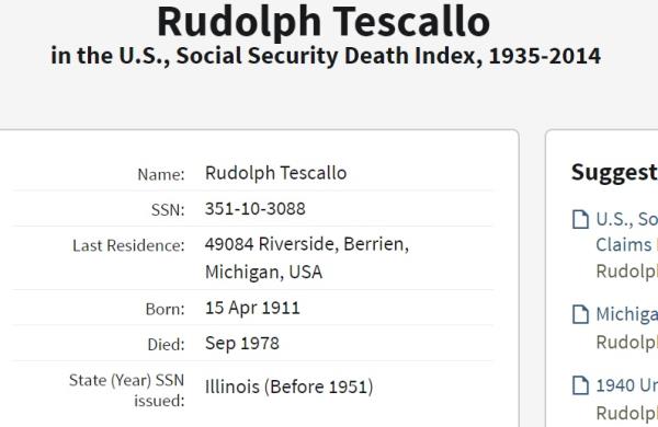Adolph "Rudolph" Steskal "Tescallo", Sr., was born on April 15, 1911 in Springfield, Sangamon, Illinois, USA. He and