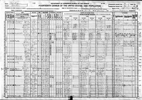 Moscardelli Family 1920 Federal Census Michigan, Lines 59-63