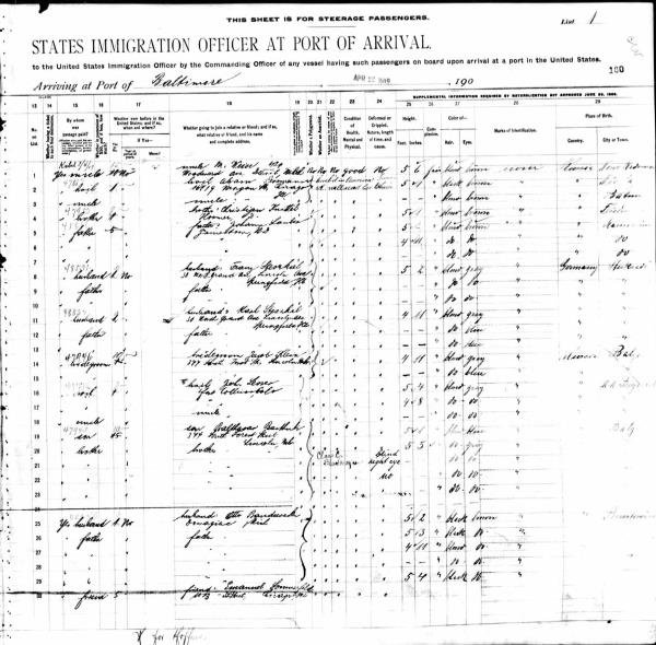 Steskal Family 1909 Ship Arrival Manifest, Lines 8-13