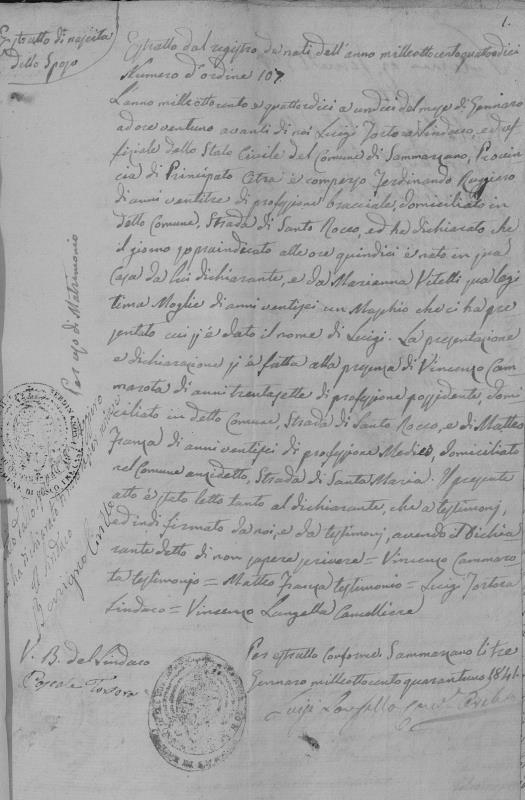 Luigi Ruggerio was born on January 11, 1814 in San Marzano, Salerno, Campania, Italy. He and