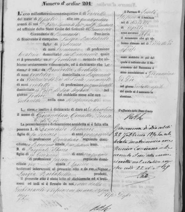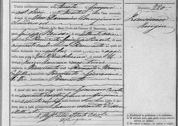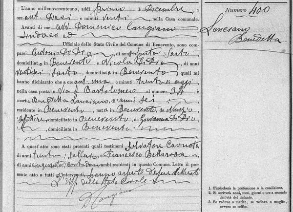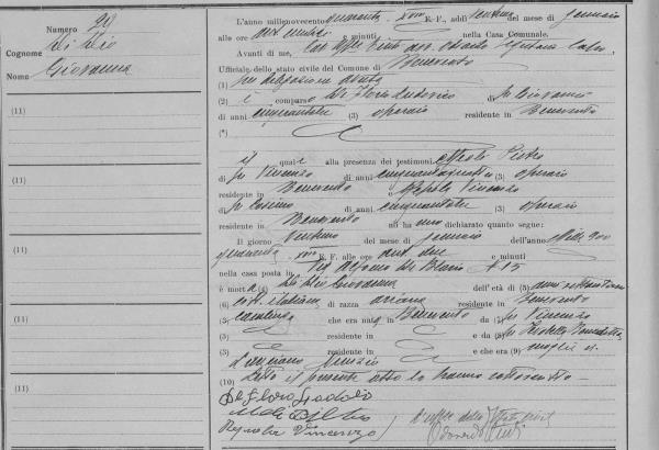 Giovannina Concetta Teresa Di Dio were married on February 22, 1890 in Benevento, Benevento, Campania, Italy. He died on October 19, 1940, at age 73, in Benevento, Benevento, Campania, Italy.