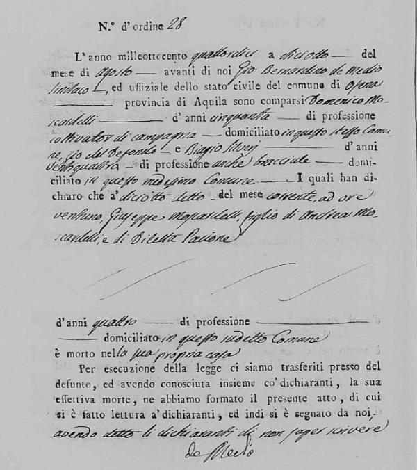 Maria Concetta Moscardelli were married on February 14, 1836 in Ofena, L'Aquila, Abruzzo, Italy. He died.