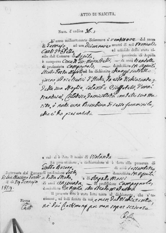 Massimilla Moscardelli was born in 1801 in Ofena, L'Aquila, Abruzzo, Italy. She and