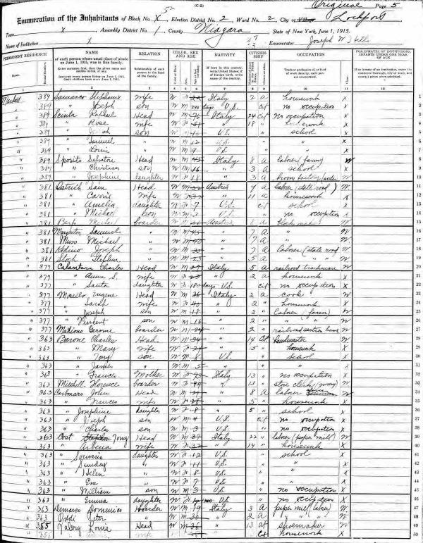 Valeri Family 1910 Federal Census New York, Lines 63-69