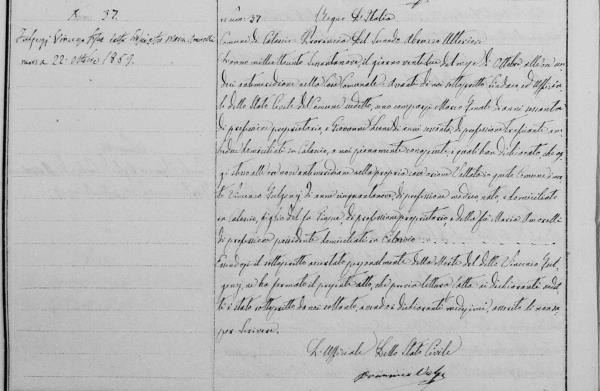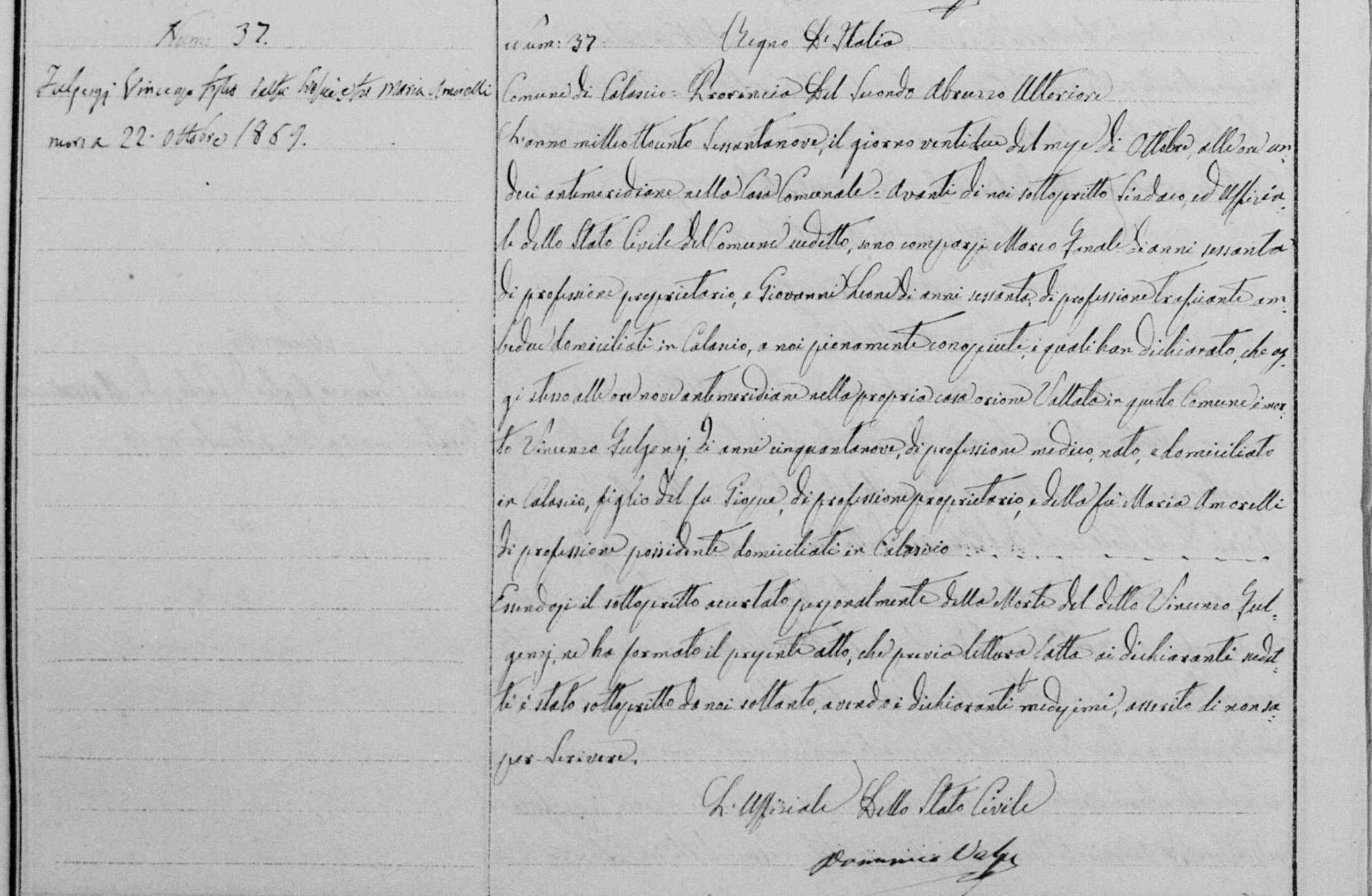 Vincenzo Paolo Serafino Fulgenzi was born on January 20, 1810 in Calascio, L'Aquila, Abruzzo, Italy. He died on October 22, 1869, at age 59, in Calascio, L'Aquila, Abruzzo, Italy.