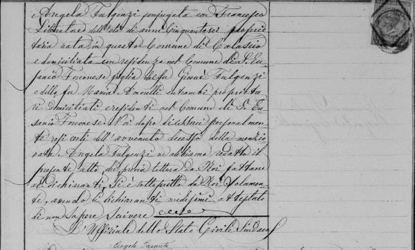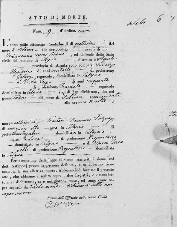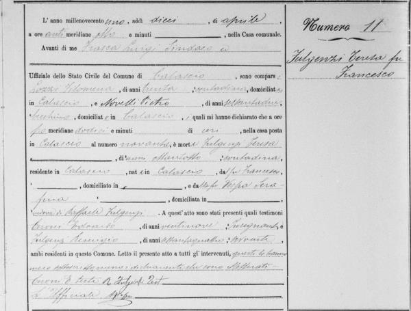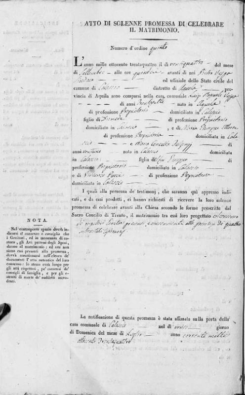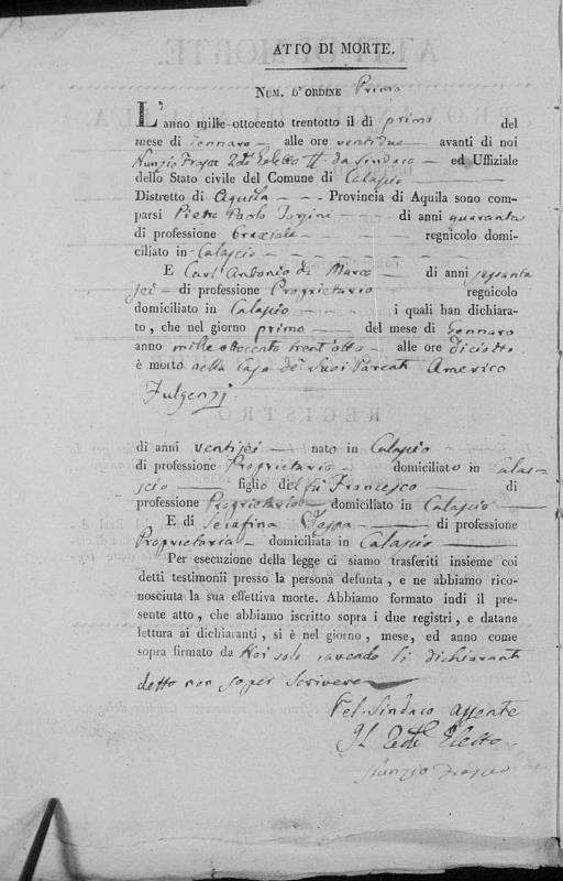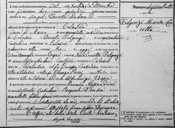 Errico Fulgenzi were married on May 26, 1829 in Calascio, L'Aquila, Abruzzo, Italy. She died.