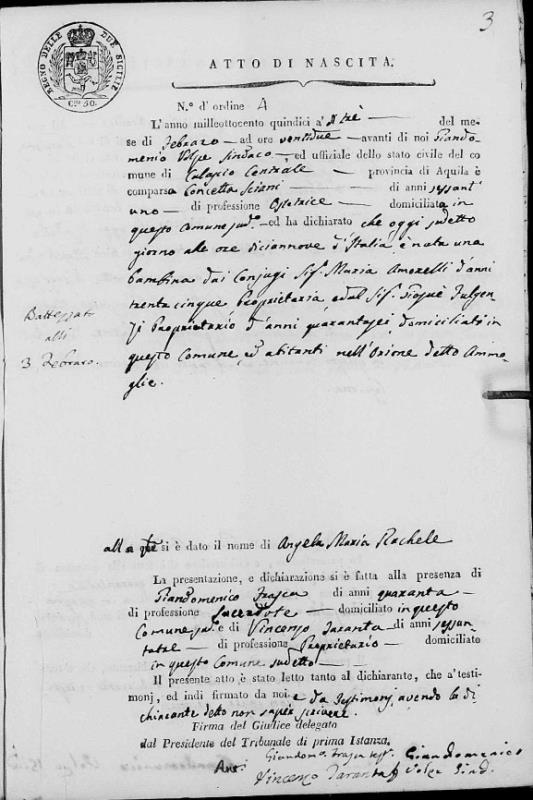 Angela Rosaria Ursini were married on May 26, 1829 in Calascio, L'Aquila, Abruzzo, Italy. He died.