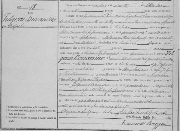 Beniamino Fulgenzi was born on November 28, 1832 in Calascio, L'Aquila, Abruzzo, Italy. He and