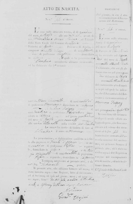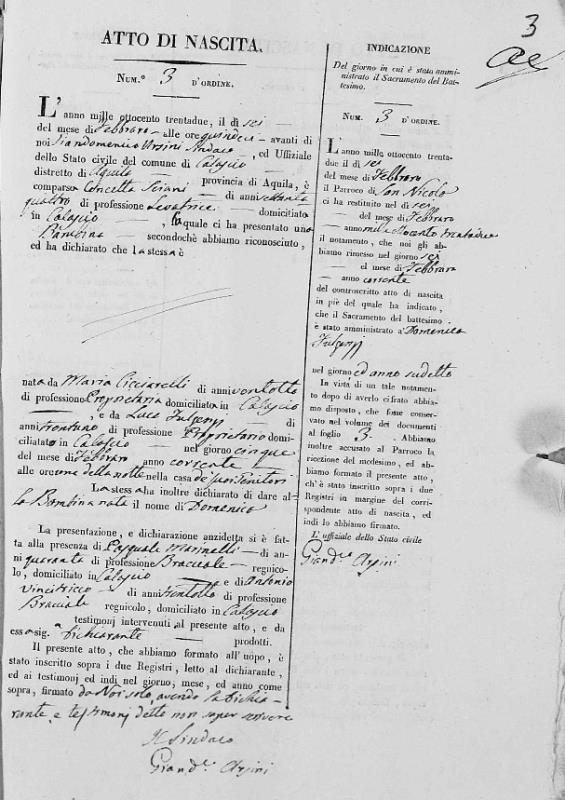 Maria Cicciarelli was born in 1808 in Calascio, L'Aquila, Abruzzo, Italy. She and