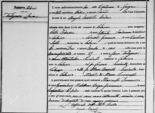 Family: Luca Fulgenzi Born: 1800, Died: June 21, 1883