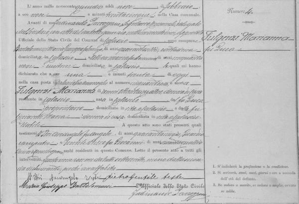 Pasquarosa Fulgenzi were married on October 3, 1867 in Calascio, L'Aquila, Abruzzo, Italy. He died on September 19, 1921, at age 88, in Calascio, L'Aquila, Abruzzo, Italy.