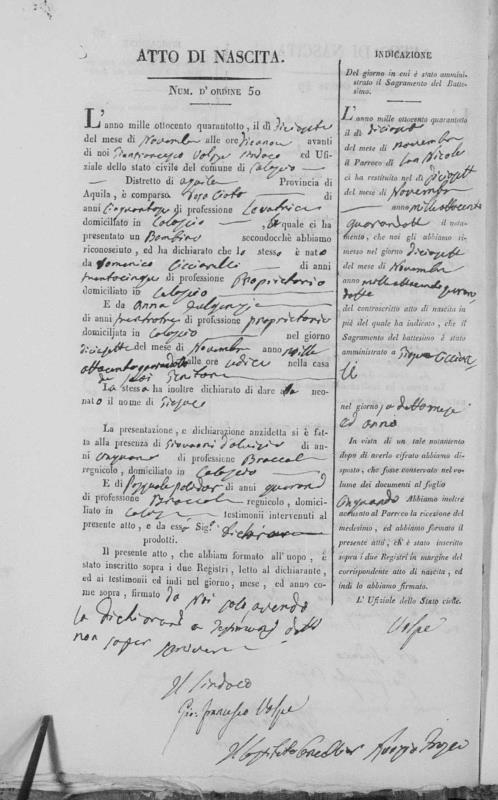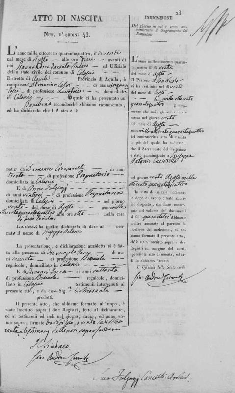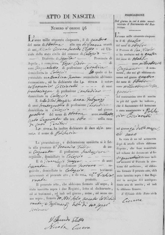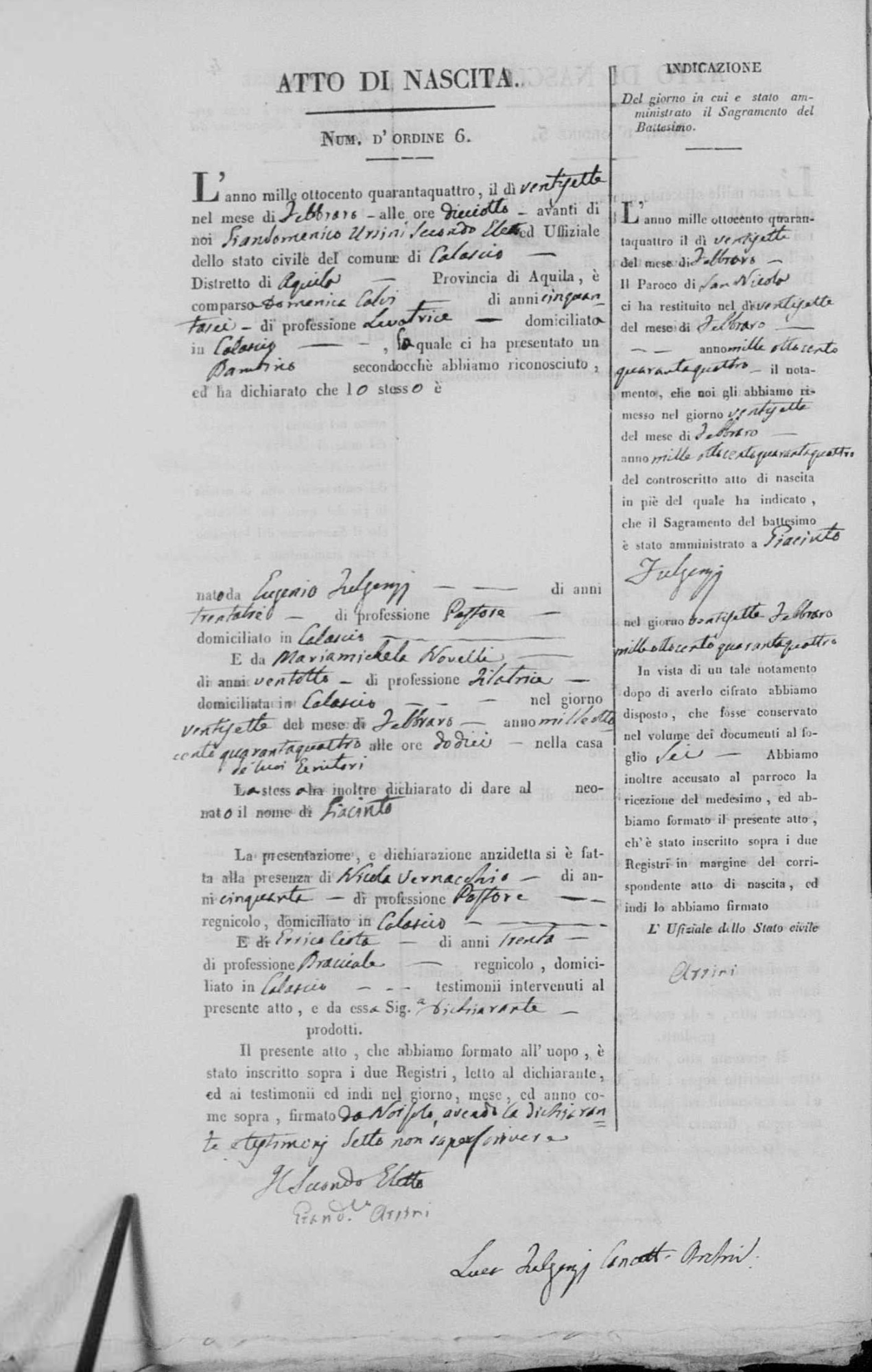 Domenico Cicciarelli was born in 1814 in Calascio, L'Aquila, Abruzzo, Italy. He and