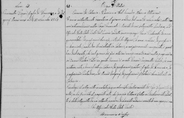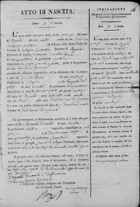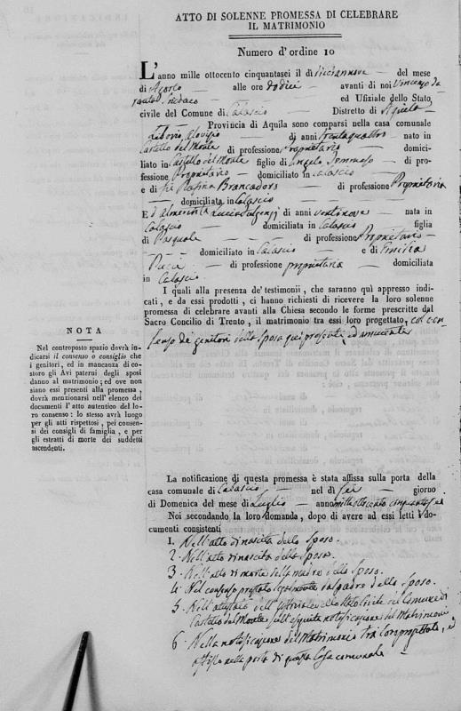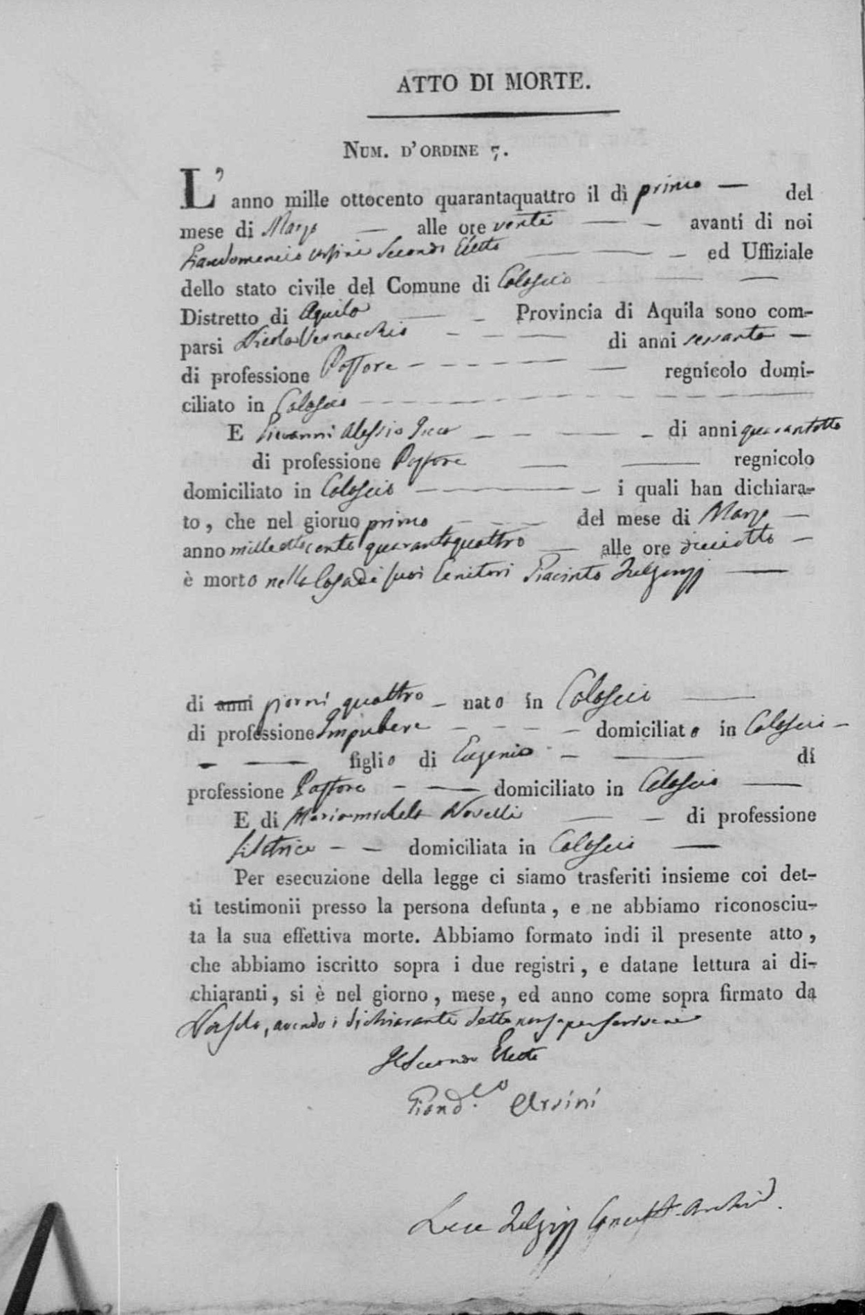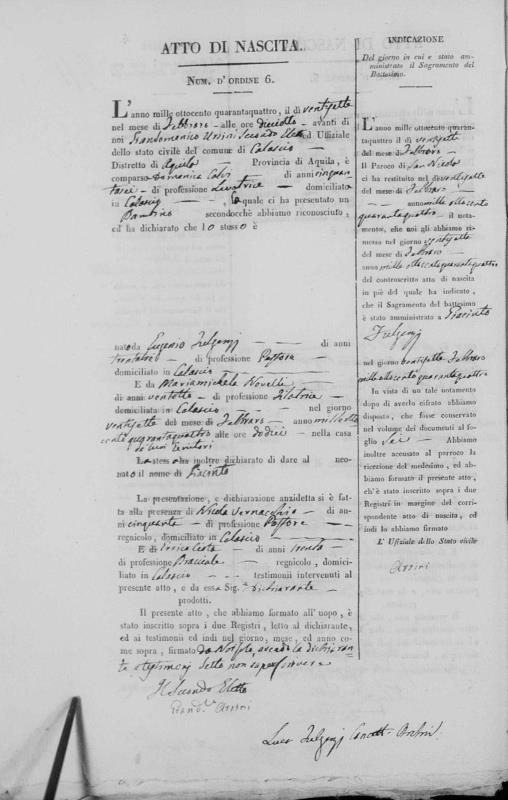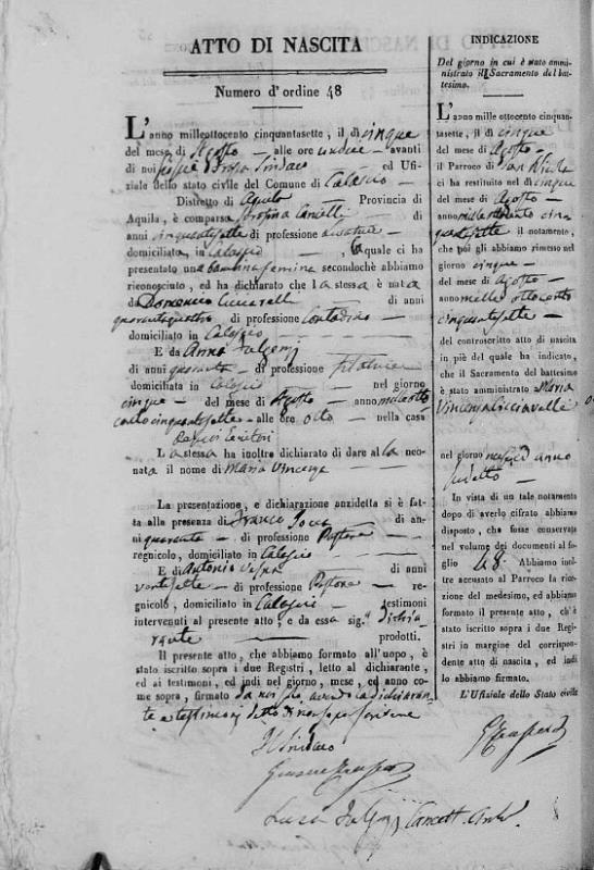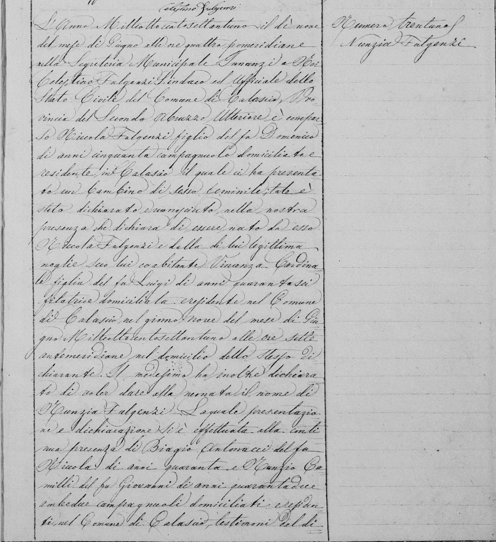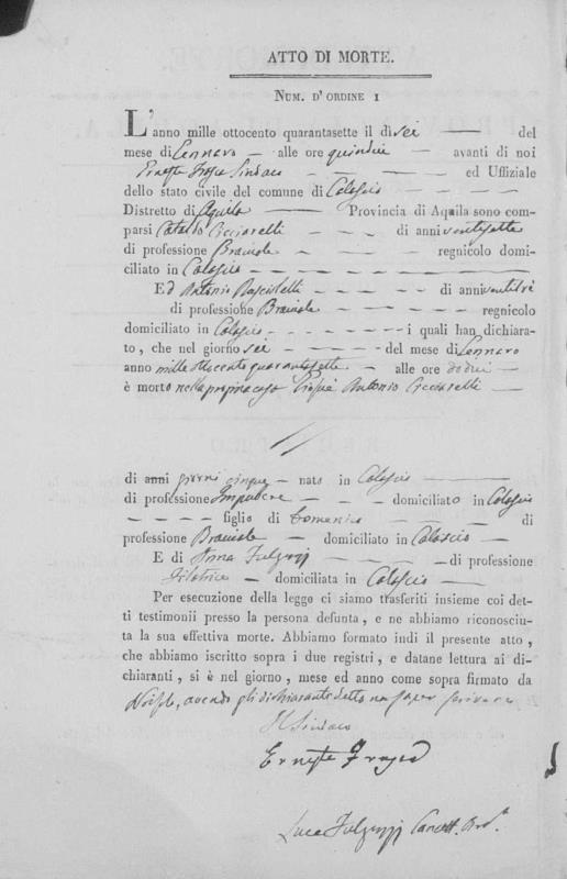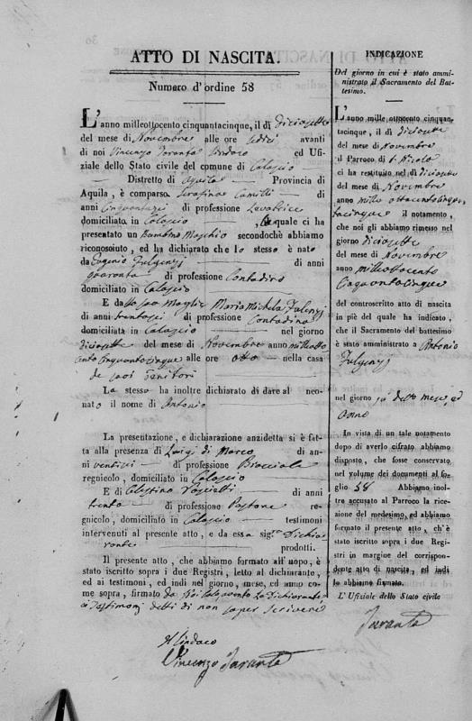 Anna Rosalia Fulgenzi were married on October 29, 1843 in Calascio, L'Aquila, Abruzzo, Italy. He died.