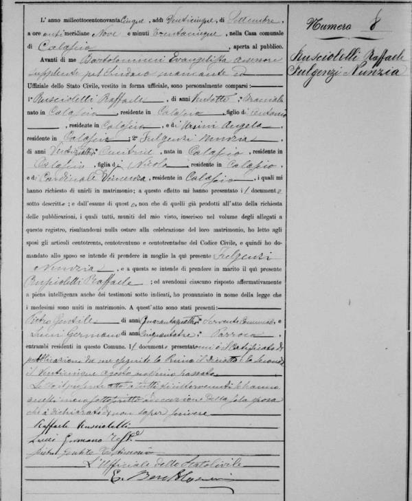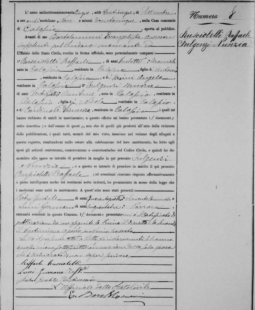Raffaele Musciolelli were married on September 25, 1895 in Calascio, L'Aquila, Abruzzo, Italy. She died.