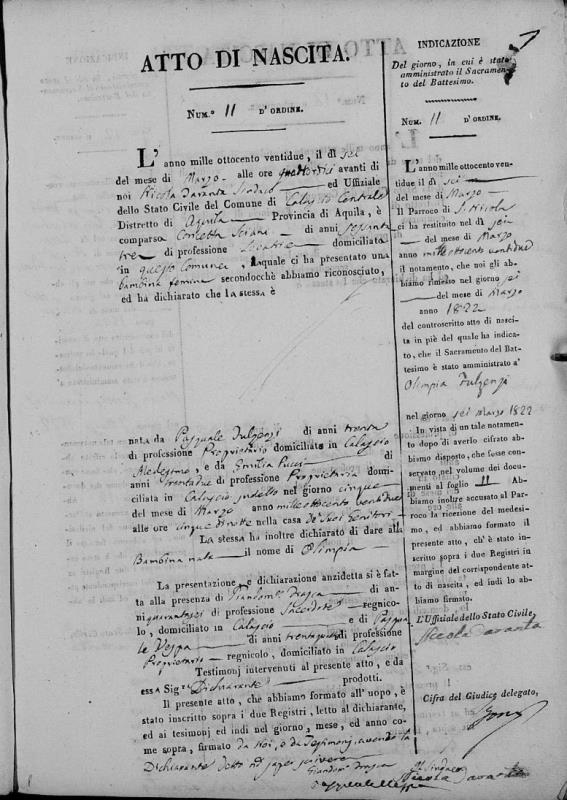 Olimpia Fulgenzi was born on March 5, 1822 in Calascio, L'Aquila, Abruzzo, Italy. She died on November 30, 1832, at age 10, in Calascio, L'Aquila, Abruzzo, Italy.