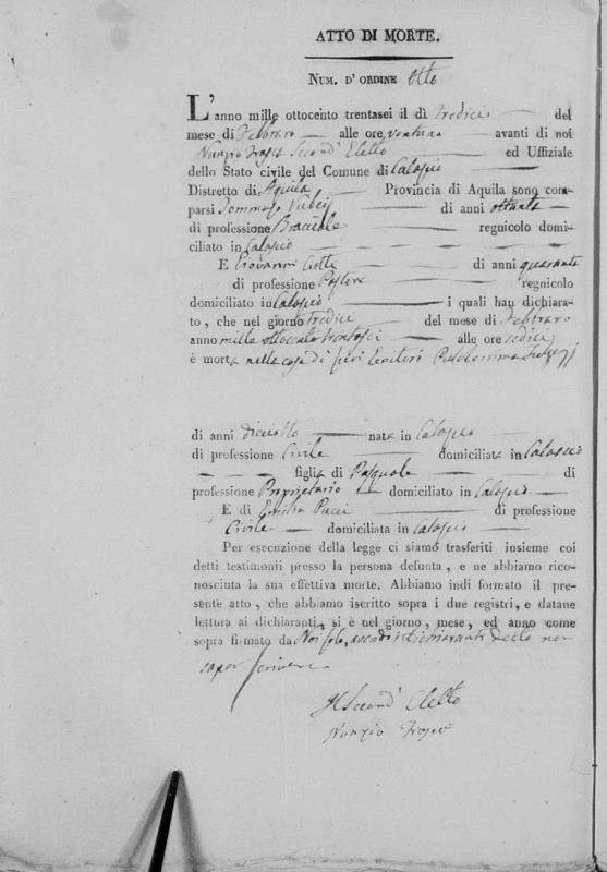 Liborio Alouisio were married on August 19, 1856 in Calascio, L'Aquila, Abruzzo, Italy. She died.