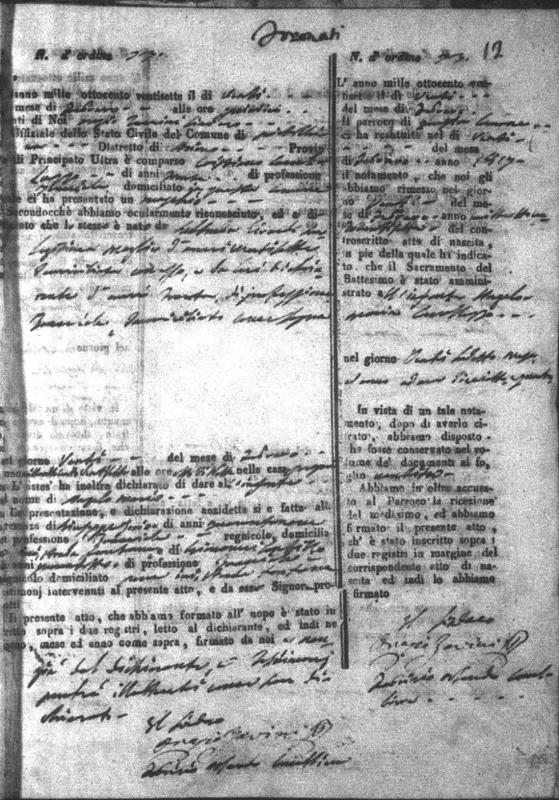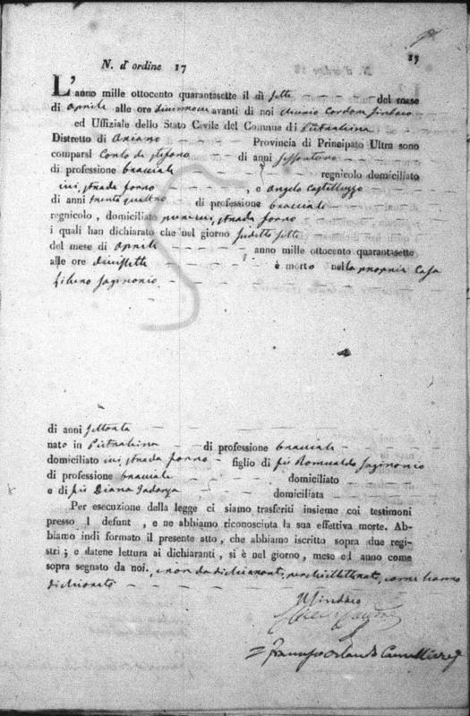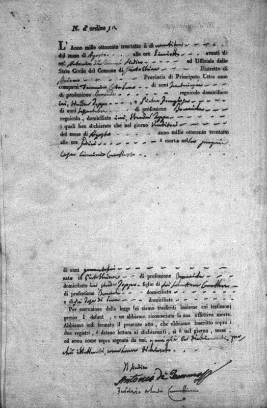 Rubbino Sebbastiano Cavalluzzo were married on December 31, 1839 in Pietrelcina, Benevento, Campania, Italy. She died.