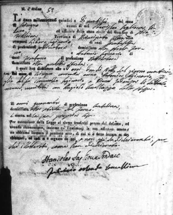 Geltruda Gilardi were married on May 8, 1826 in Pietrelcina, Benevento, Campania, Italy. He died.