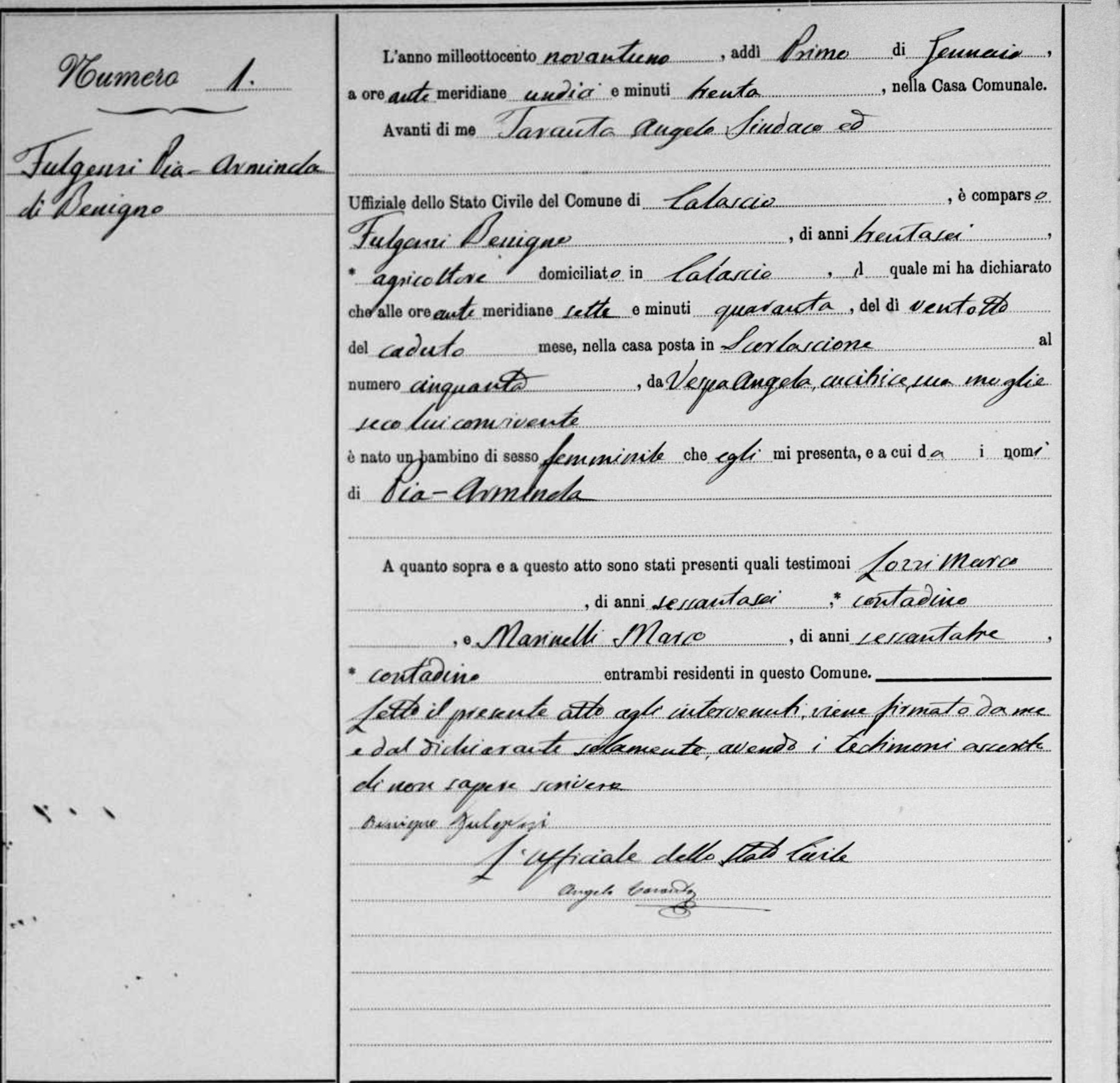 Pia Arminda Fulgenzi was born on December 28, 1890 in Calascio, L'Aquila, Abruzzo, Italy. She died on September 16, 1915, at age 24, in Calascio, L'Aquila, Abruzzo, Italy.