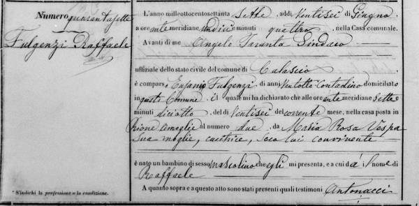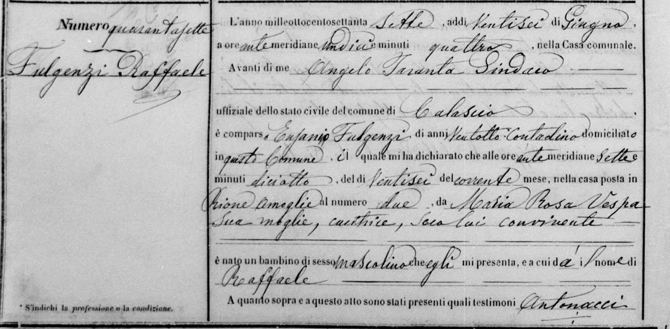Raffaele Fulgenzi was born on June 26, 1877 in Calascio, L'Aquila, Abruzzo, Italy. He and