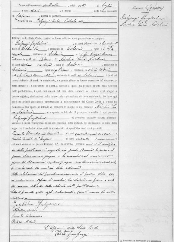 Guglielimo Fulgenzi were married on July 7, 1927 in Calascio, L'Aquila, Abruzzo, Italy. She died.