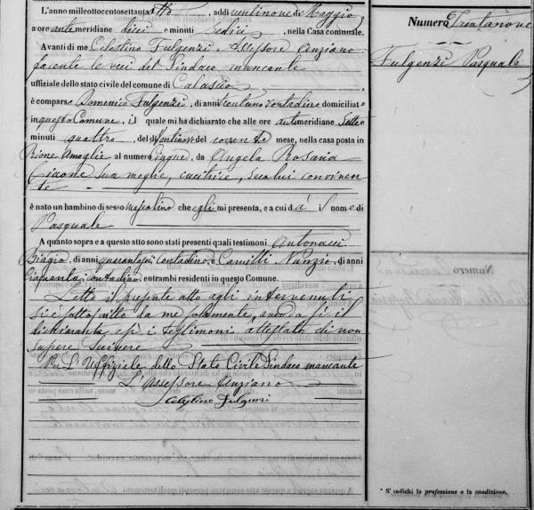 Pasquale Fulgenzi was born on May 29, 1878 in Calascio, L'Aquila, Abruzzo, Italy. He and