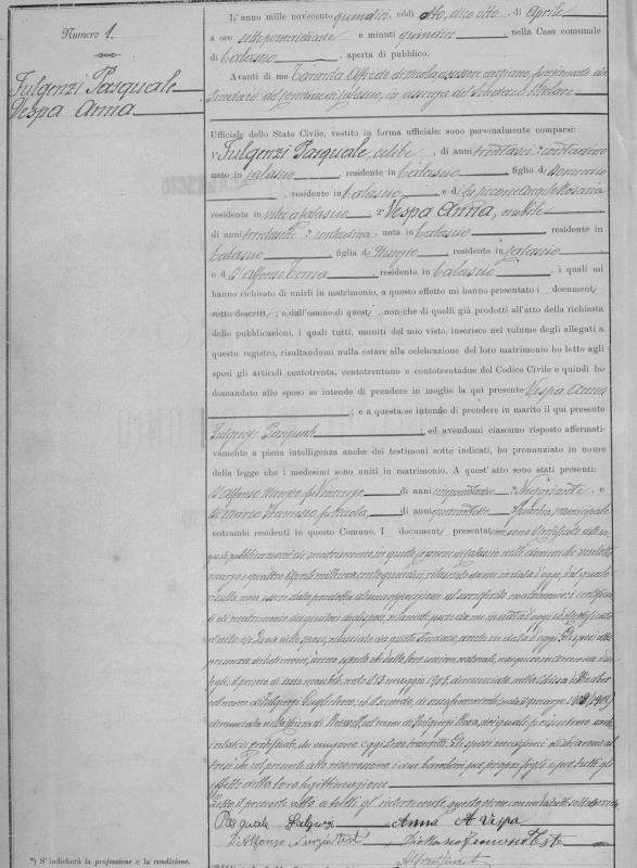 Anna Vespa were married on April 18, 1915 in Calascio, L'Aquila, Abruzzo, Italy. He died.