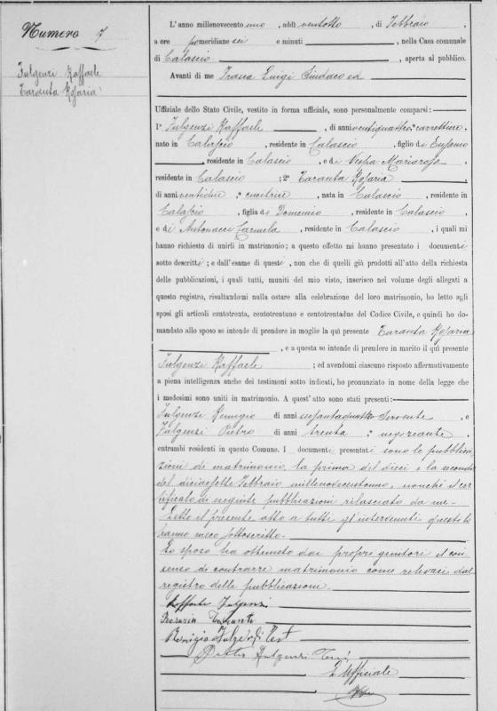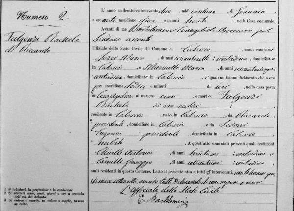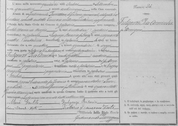 Raffaele Fulgenzi were married on February 28, 1901 in Calascio, L'Aquila, Abruzzo, Italy. She died.