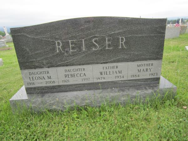 Leona Reiser was born on March 15, 1916 in Johnstown, Cambria, Pennsylvania, USA. She died on April 21, 2008, at age 92, in Johnstown, Cambria, Pennsylvania, USA. She was buried in Saint Joseph Cemetery, Geistown, Pennsylvania.