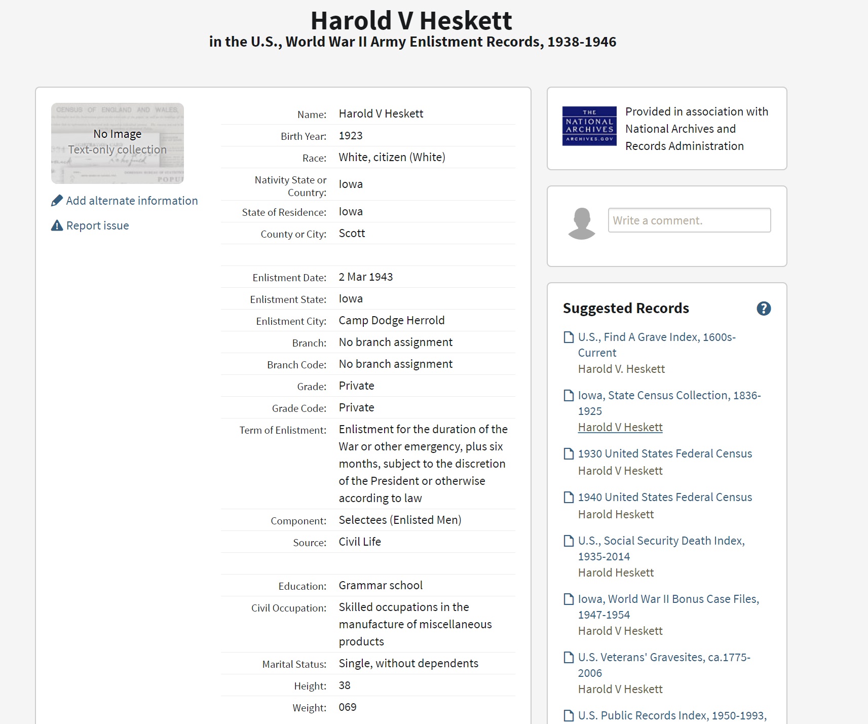 Harold V. Heskett was born on February 22, 1923 in Scott, Iowa, USA. He and