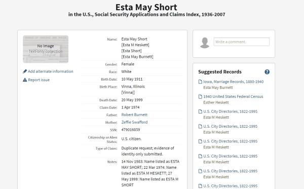 Esther May Burnett was born on May 10, 1911 in Vienna, Johnson, Illinois, USA. She and
