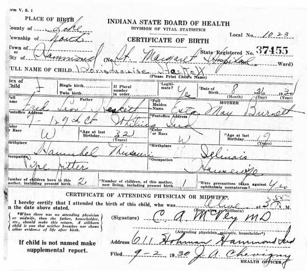 1930 Birth Record